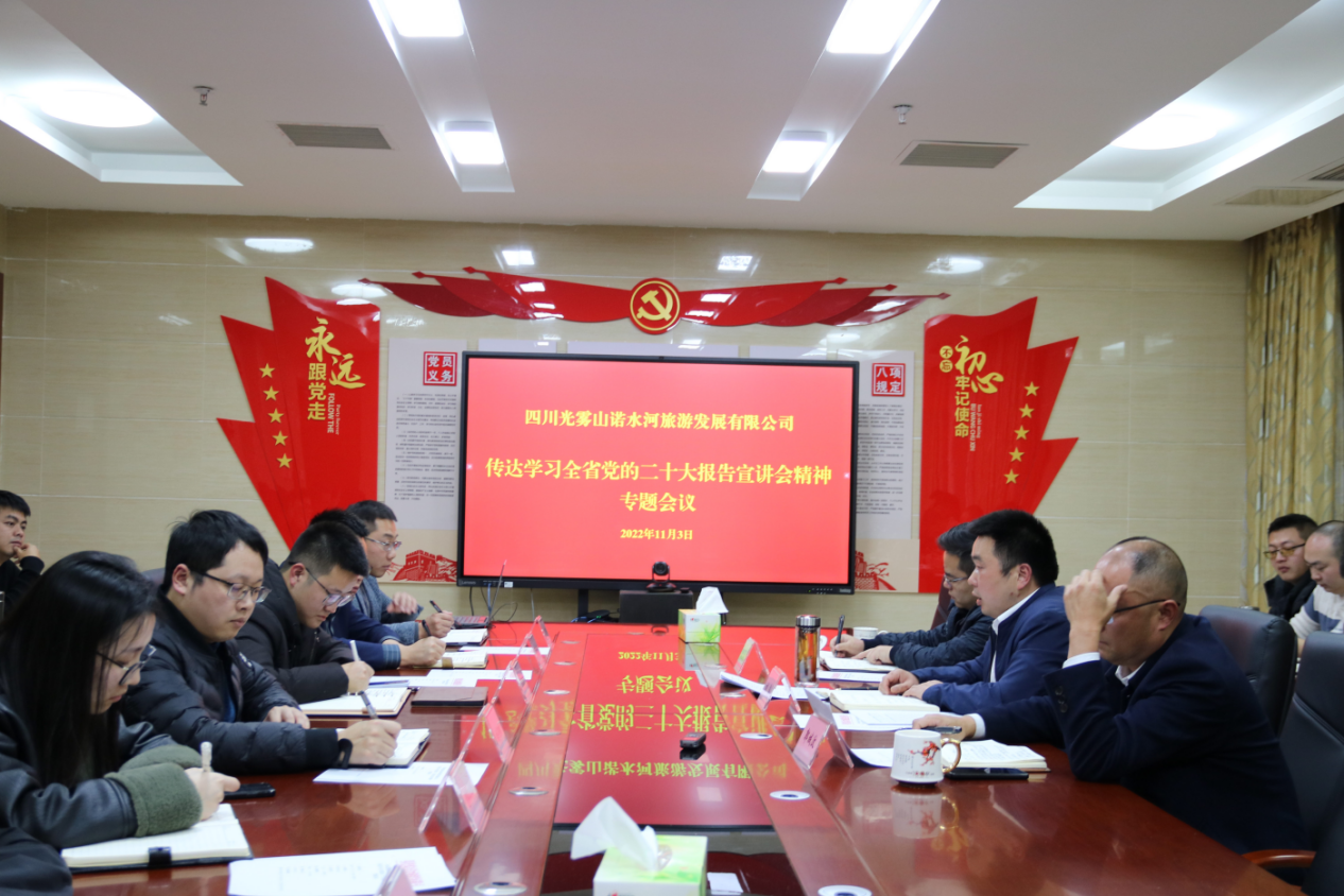 為深入學(xué)習(xí)宣傳貫徹黨的二十大精神,切實(shí)將思想和行動(dòng)統(tǒng)一到黨的二十大精神上來(lái),11月3日晚,四川光霧山諾水河旅游發(fā)展有限公司召開(kāi)專題會(huì)議傳達(dá)學(xué)習(xí)全省黨的二十大報(bào)告宣講會(huì)精神,全面深刻學(xué)習(xí)了黨的二十大報(bào)告原文。